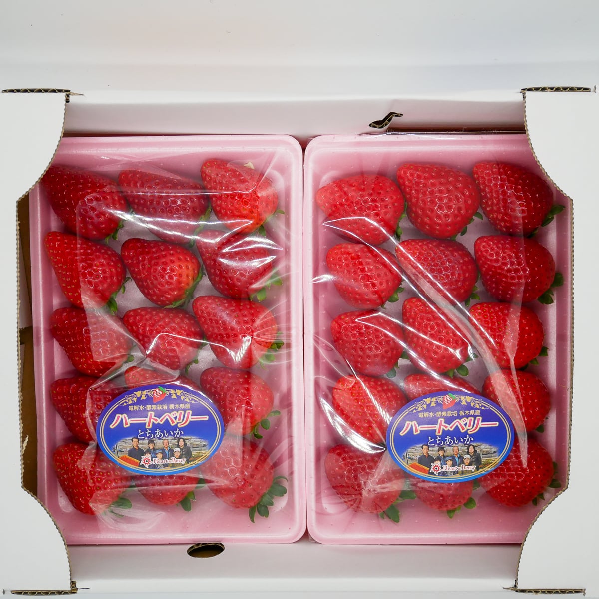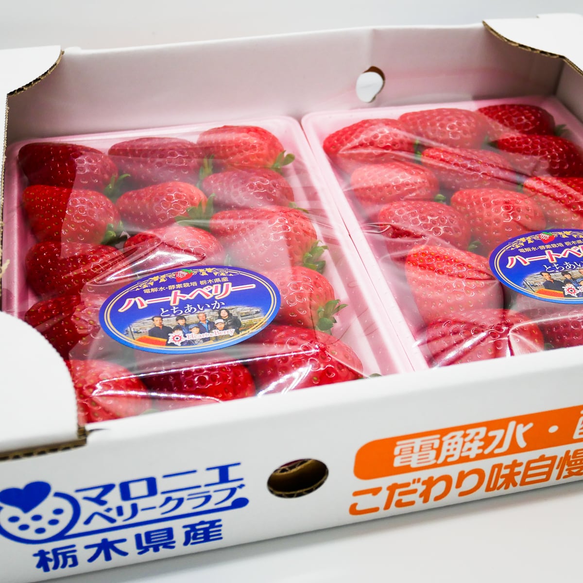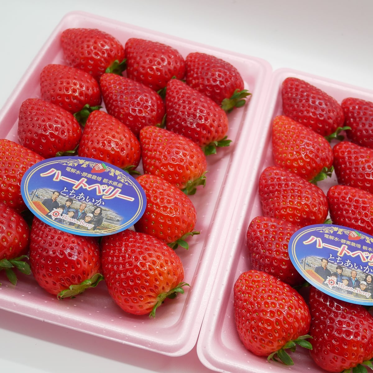 丸みのあるきれいな三角型で、ヘタの部分がくぼんでいるため、縦に切ると断面がハート型になる特徴があります。「とちおとめ」と同じくらいの糖度ですが、酸味が少ない分、甘みが際立っているため、子供でも食べやすく、シャリシャリした歯ごたえと、みずみずしい口当たりを持つ新品種の苺です。